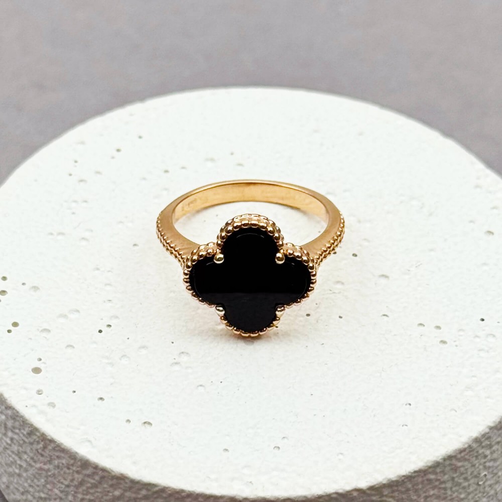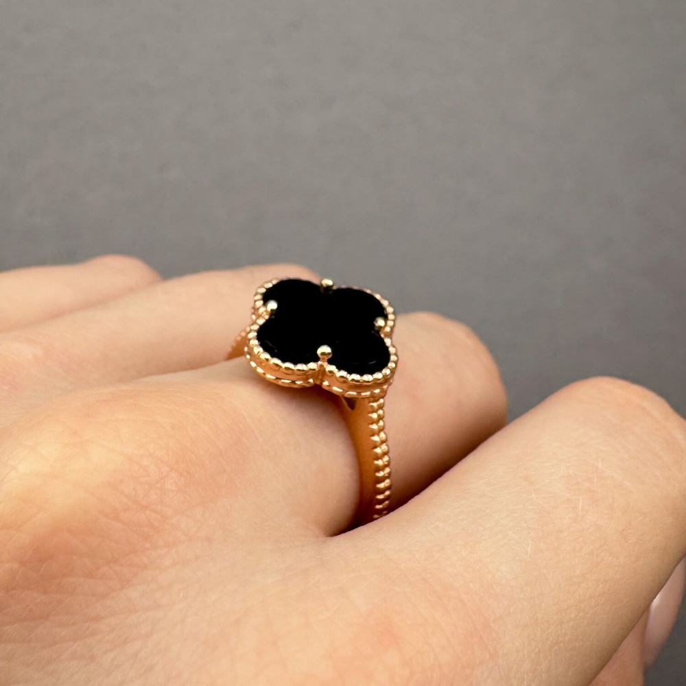 Серебряное кольцо Клевер с ониксом в позолоте. Артикул: 009649