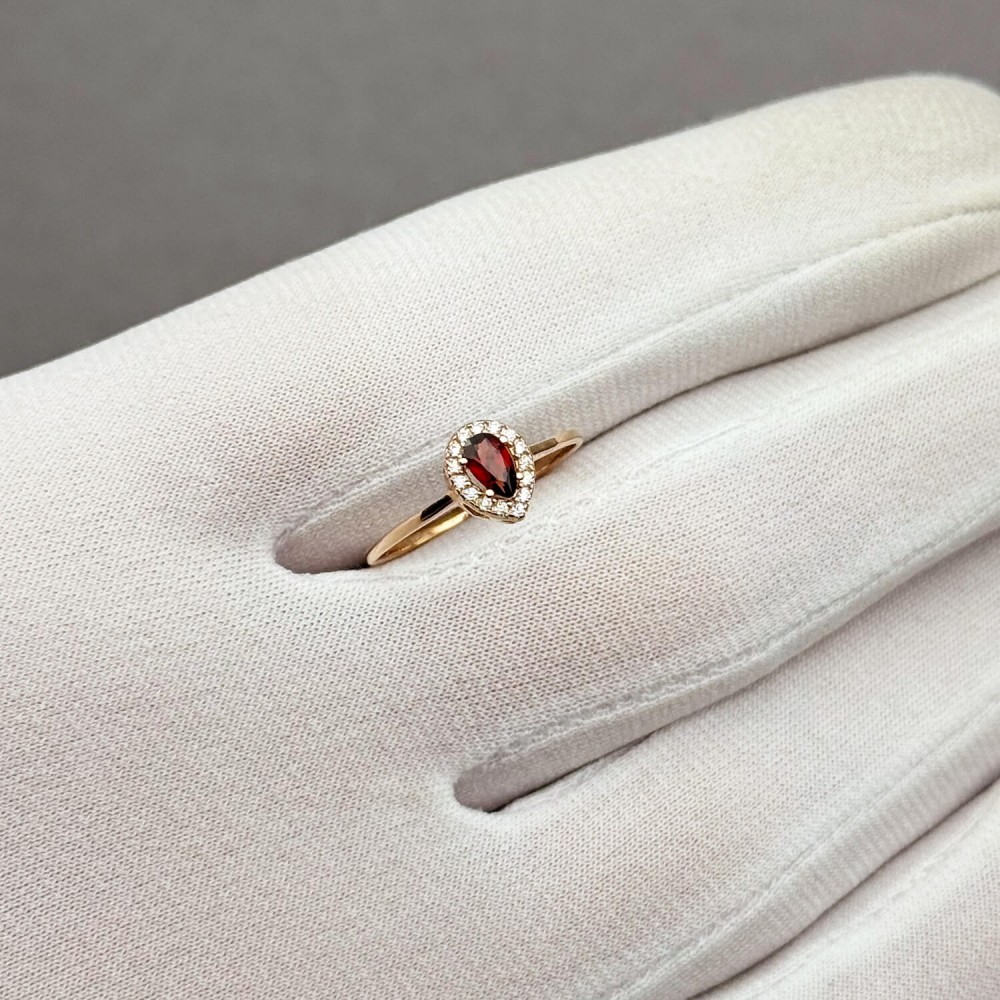 Золотое кольцо с гранатом и фианитами. Артикул: 009832