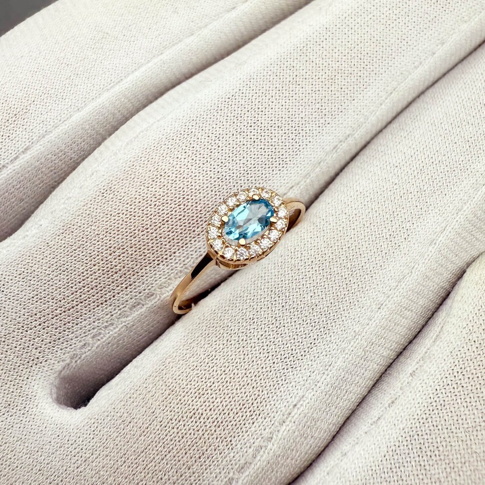Золотое кольцо с топазом и фианитами. Артикул 009831
