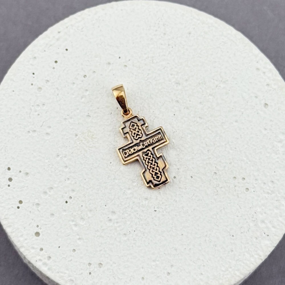 Золотой крестик с чернением и распятием. Артикул: 001081