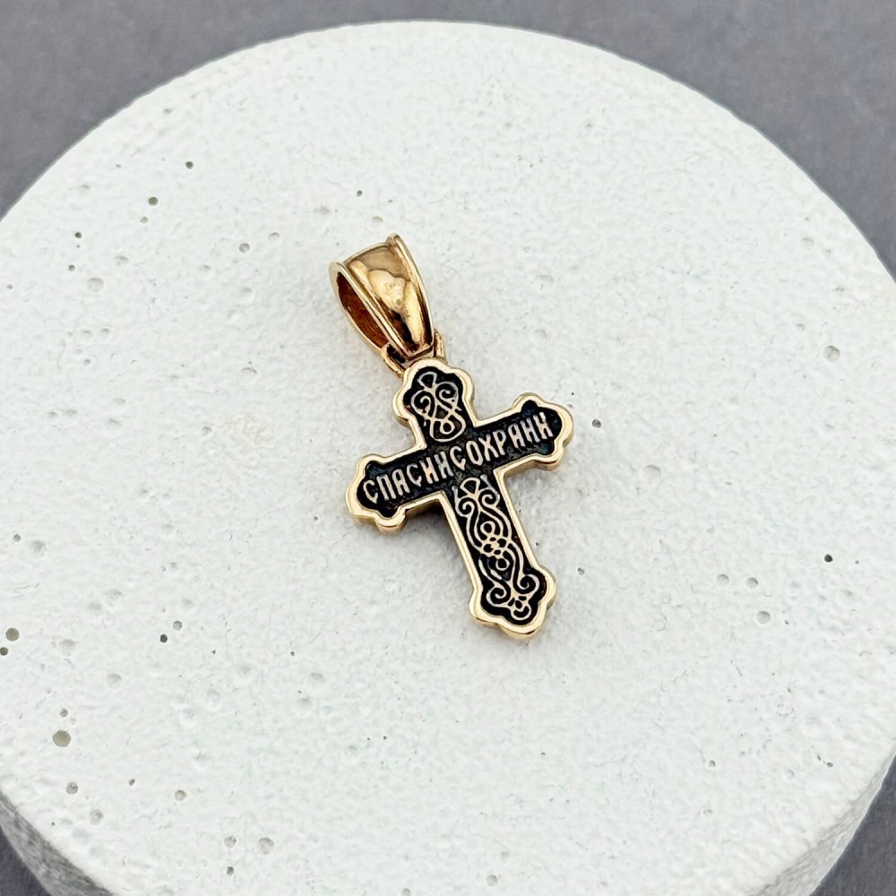Золотой крестик с чернением и распятием. Артикул: 001123