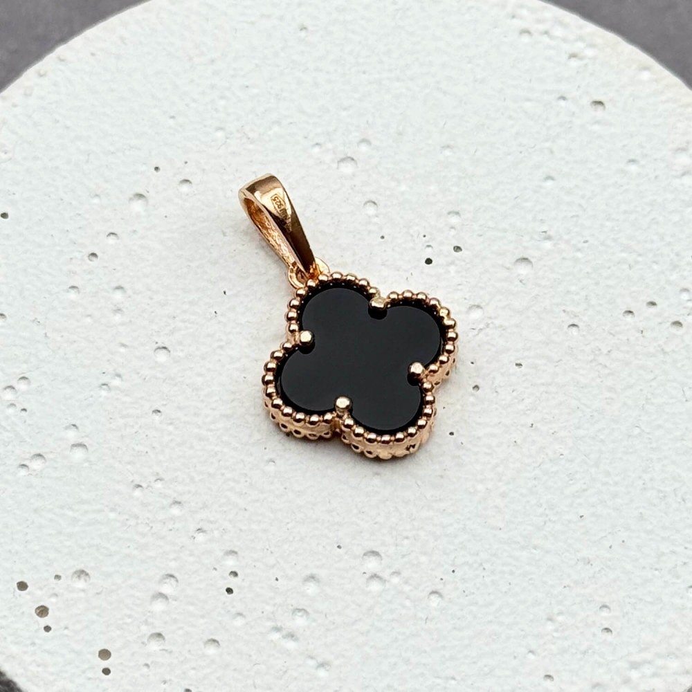 Серебряный подвес Клевер с ониксом в позолоте. Артикул: 009633