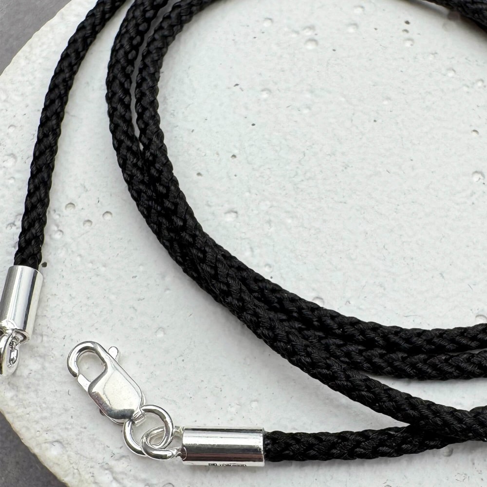 Черный шелковый шнурок с серебряным замком. Артикул: 009462