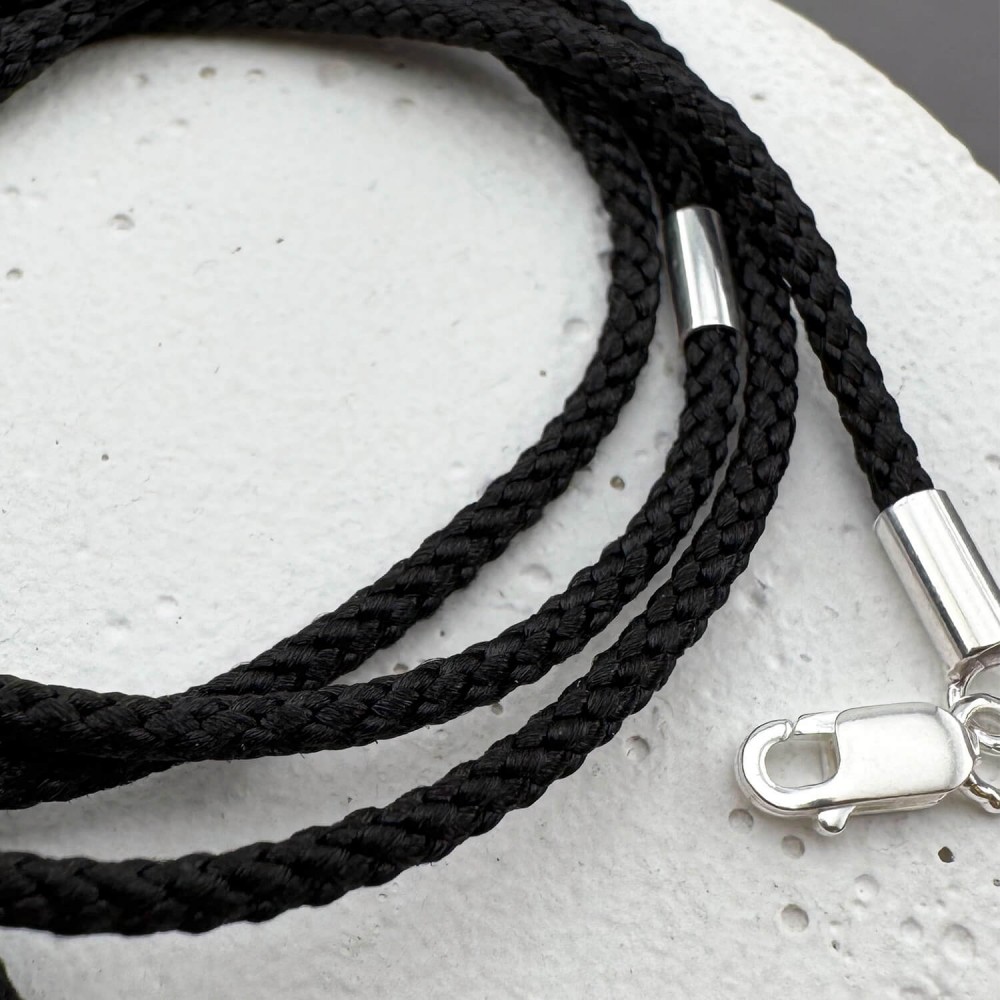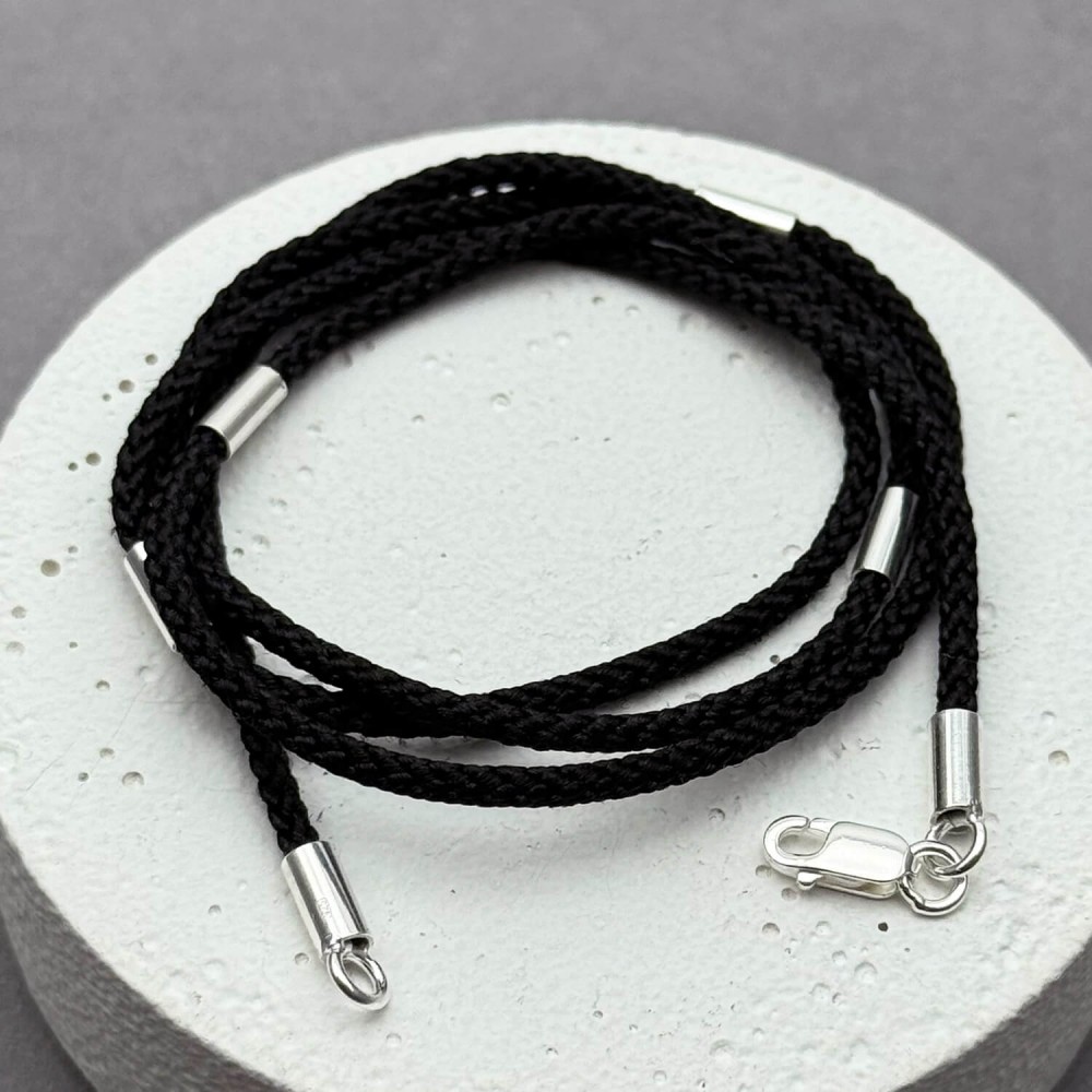 Черный шелковый шнурок с серебряными вставками. Артикул: 009457