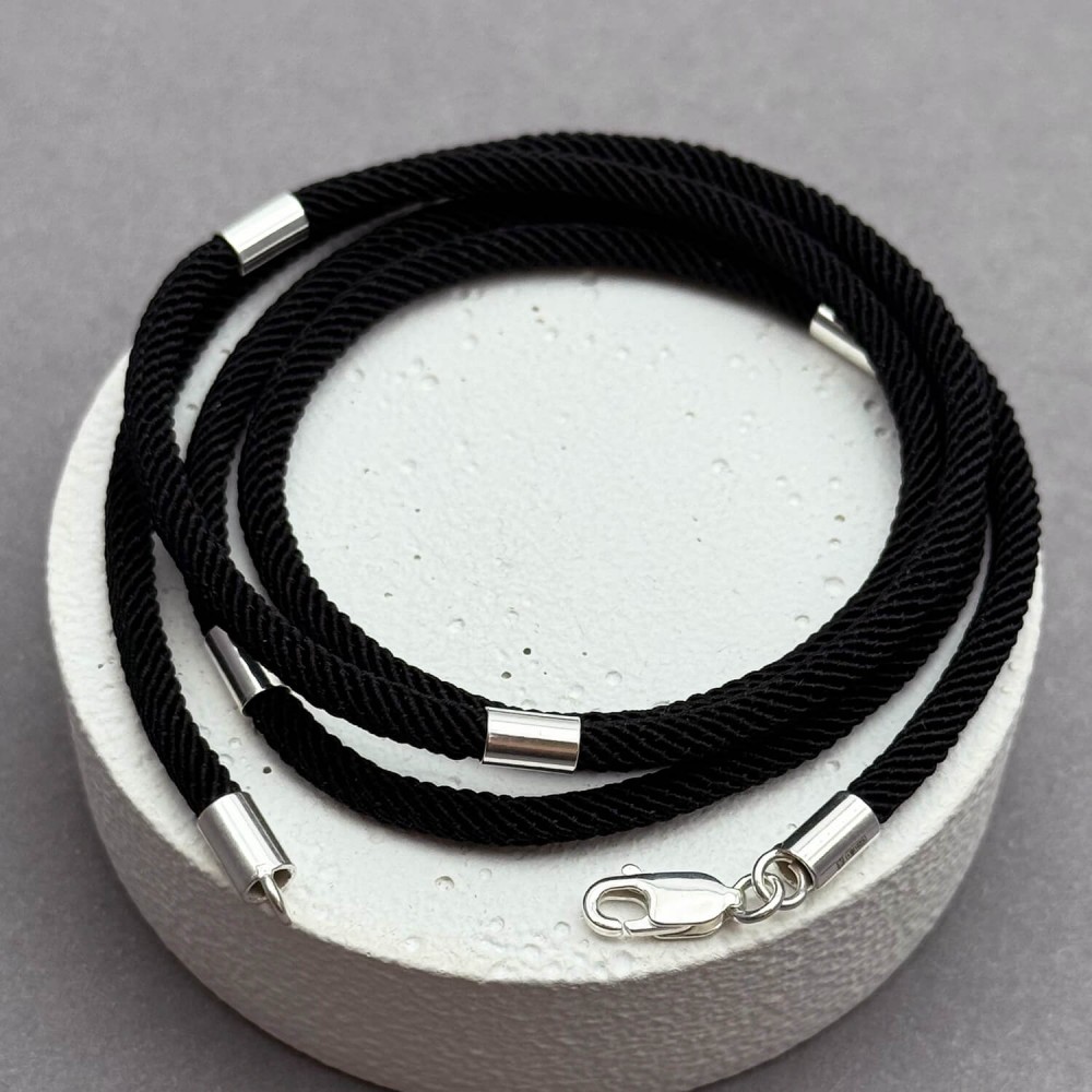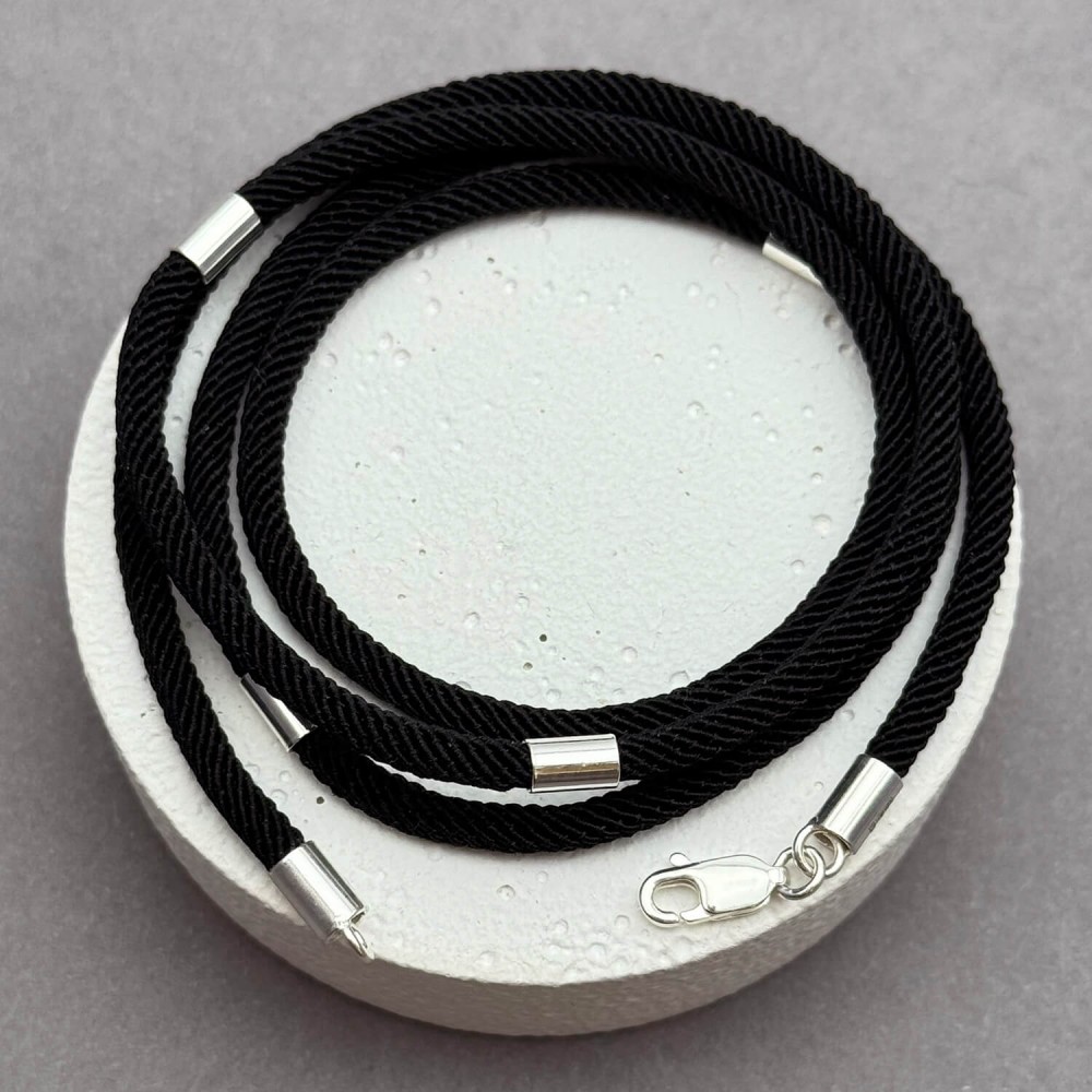 Черный шелковый шнурок с серебряными вставками. Артикул: 009467