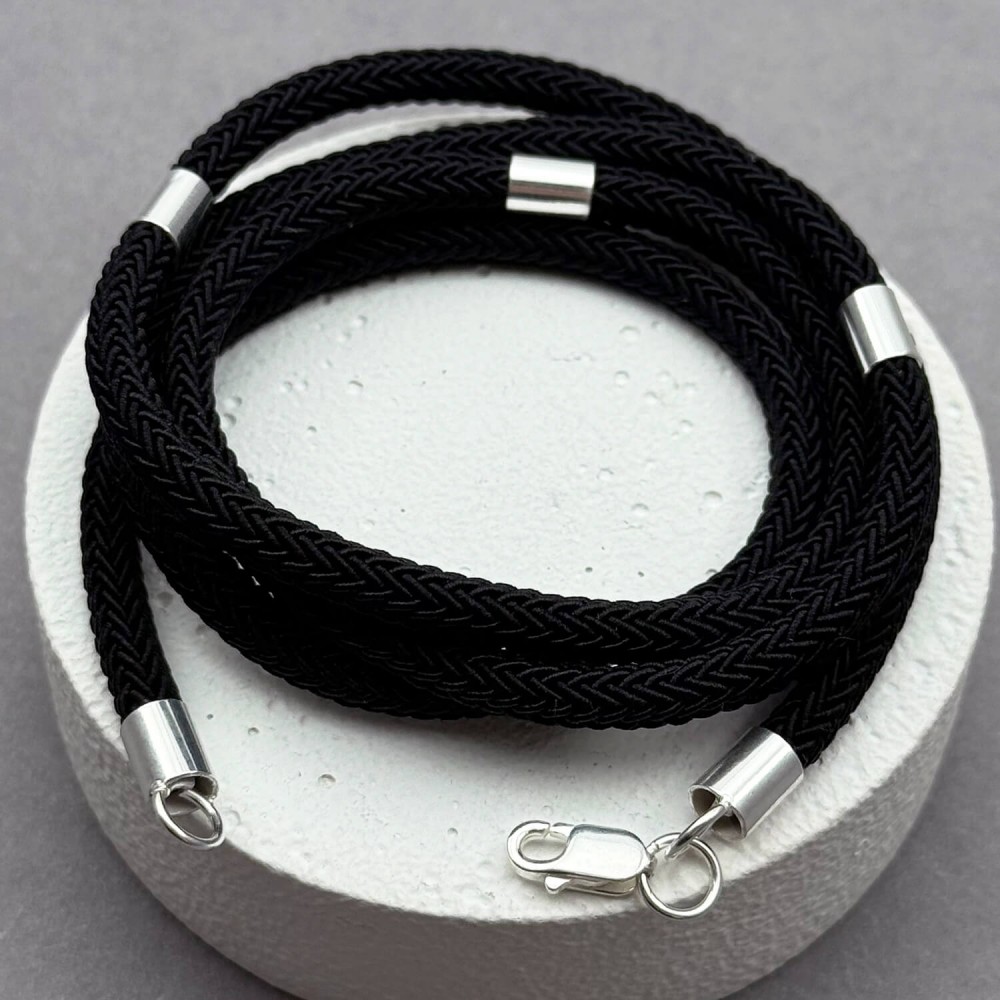 Черный шелковый шнурок с серебряными вставками. Артикул: 009624