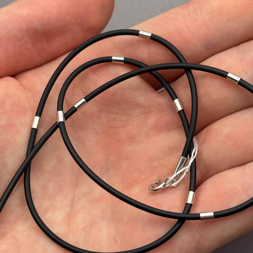 Каучуковый шнурок с серебряными вставками. Артикул: 006958
