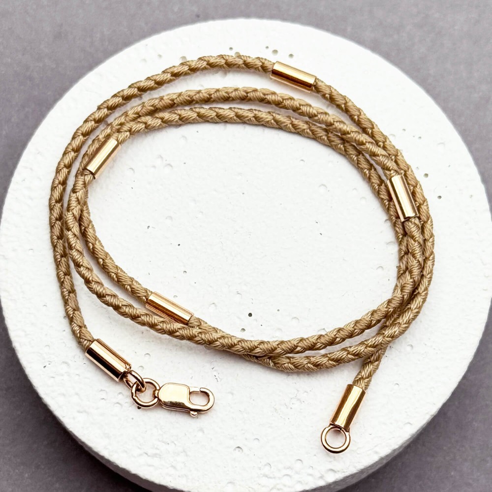 Шелковый шнурок с серебряным позолоченым замком и вставками. Артикул: 009579