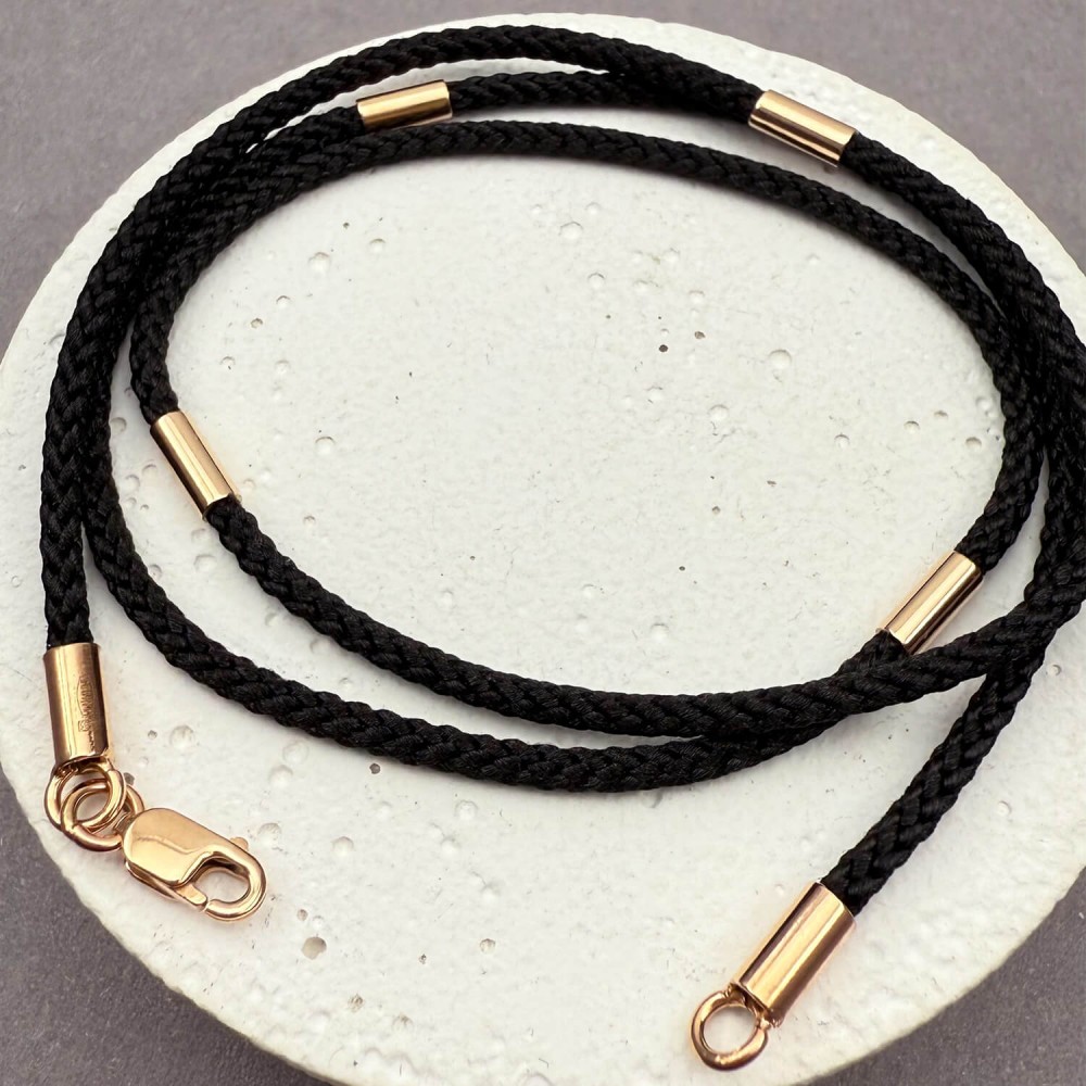 Шелковый шнурок с серебряным позолоченым замком и вставками. Артикул: 009655