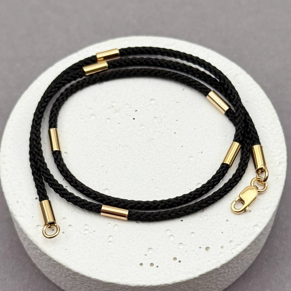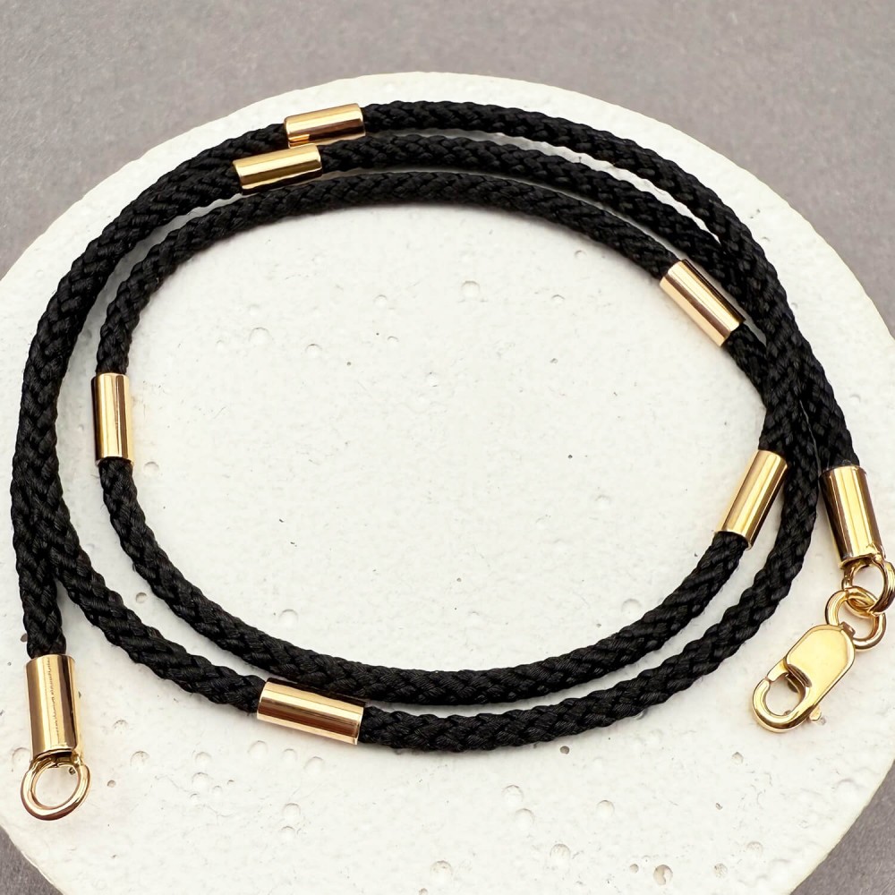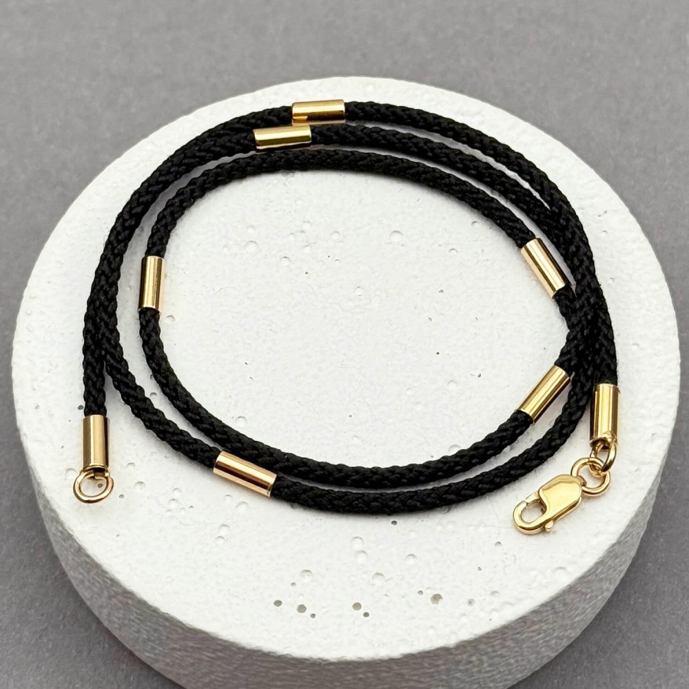 Шелковый шнурок с серебряным позолоченым замком и вставками. Артикул: 009856