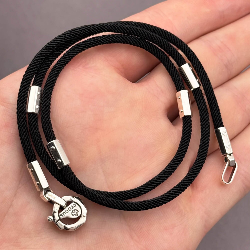 Шелковый шнурок с серебряными вставками. Артикул: 009893