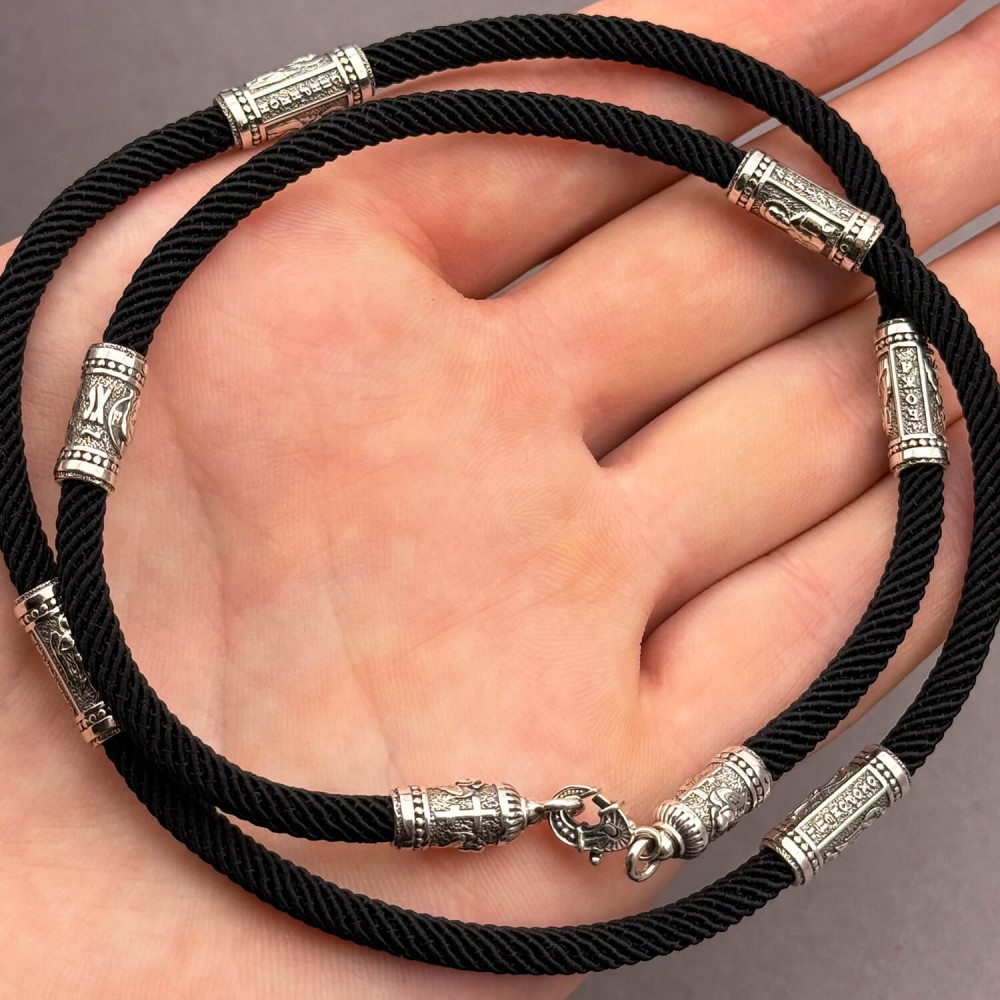 Шелковый шнурок «Святые защитники» с серебряными вставками. Артикул: 009892