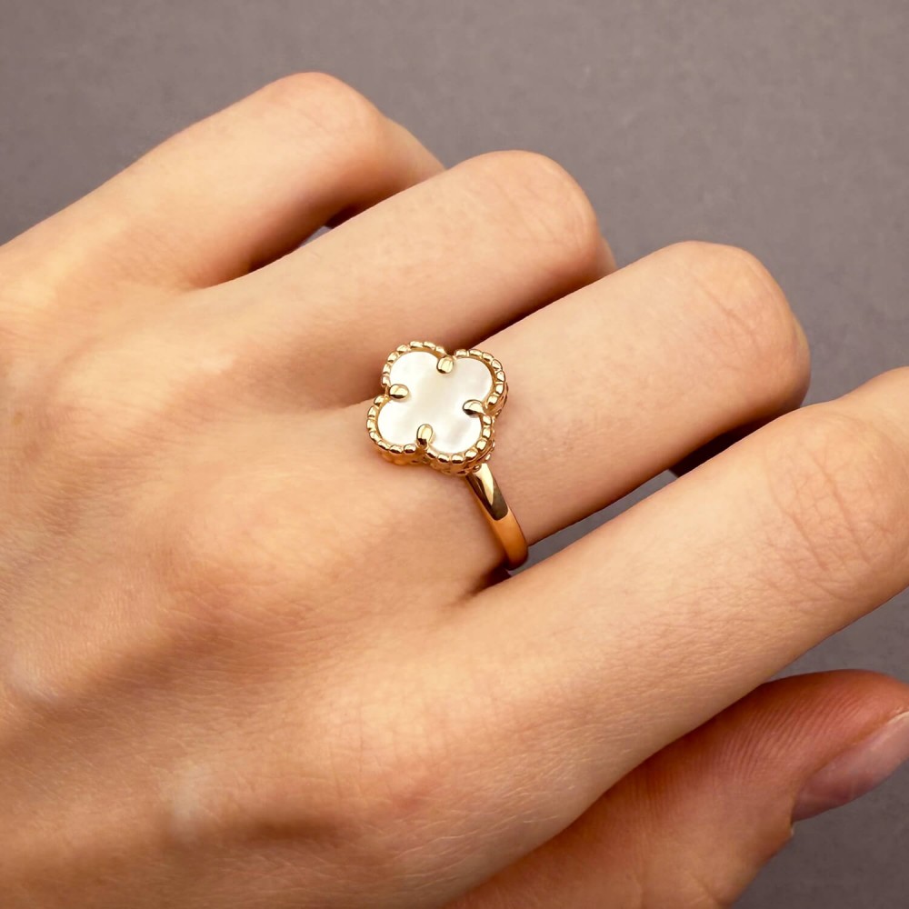 Золота каблучка Конюшина з перламутром. Артикул: 010071