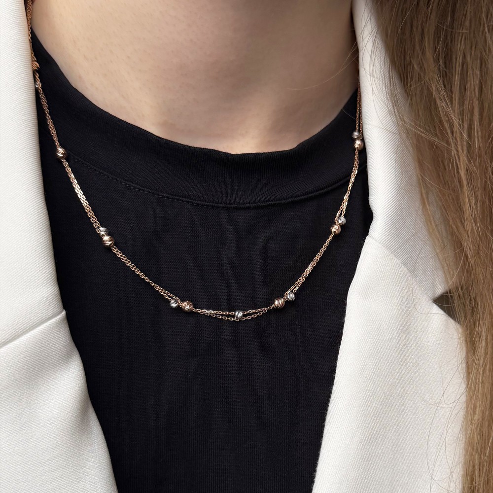 Золоте кольє з алмазними кульками. Артикул: 010383