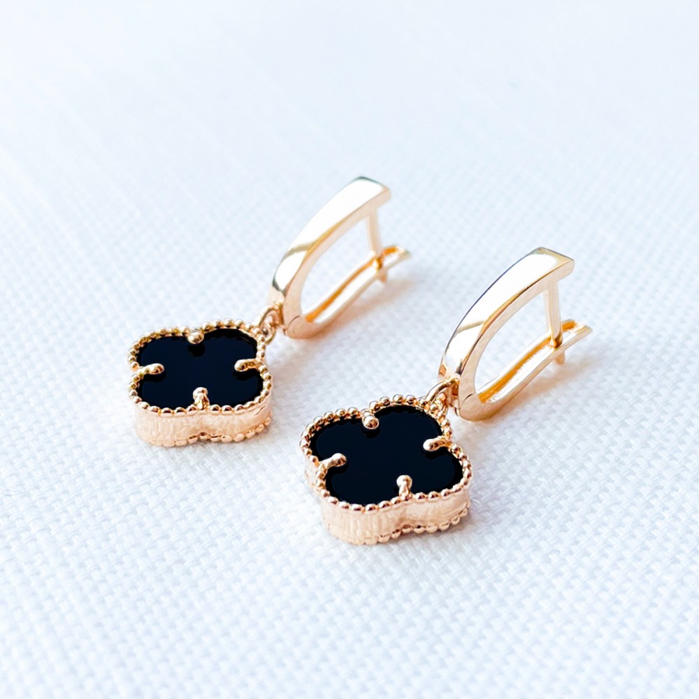 Золоті сережки-підвіски Клевер з оніксом. Артикул 004992