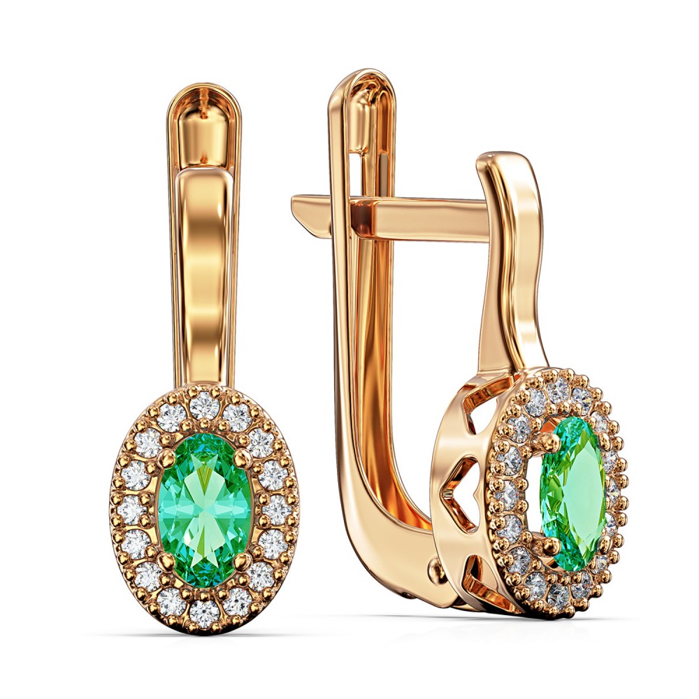 Золоті сережки зі смарагдом і фіанітами. Артикул: 010460